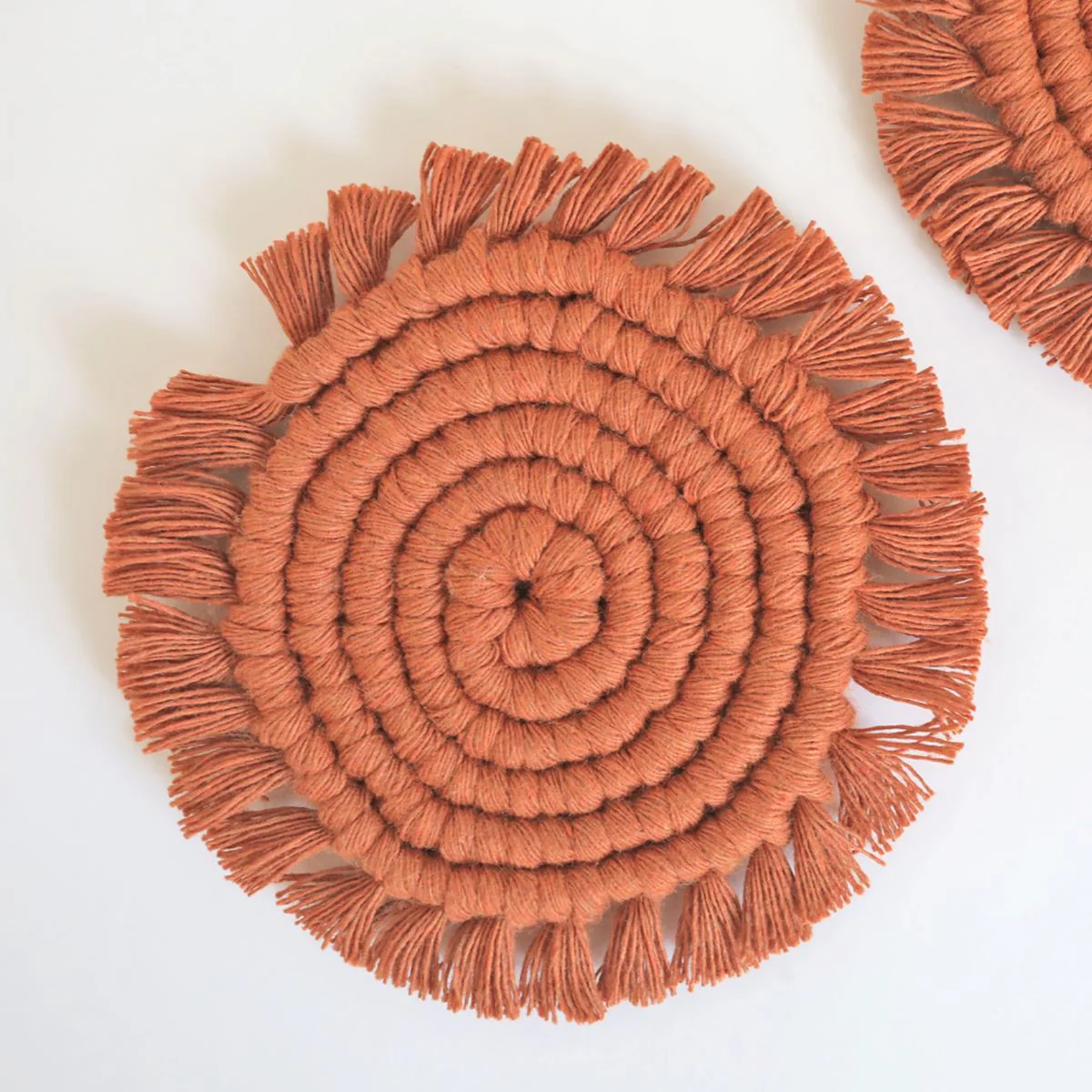 Handmade macrame coasters woven with organic hand dyed cotton in earth tone inspired hues. Protecting your surfaces has never been so beautiful.Â
